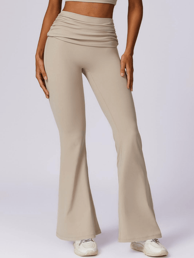 Die Classy Flared Leggings in Beige kombiniert einen eleganten Look mit maximaler Performance. Für einen Look, der dich selbstbewusst durch jeden Tag begleitet. Super angenehm auf der Haut und hebt deine Kurven hervor, während der hohe Bund für sicheren Halt sorgt – ganz ohne Verrutschen.