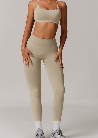 Die SkyPro V-Cut Leggings in Beige kombiniert einen eleganten Look mit maximaler Performance. Der neue V-Cut am Rücken betont gezielt deine Taille und bringt deine Rückenlinie noch stärker zur Geltung – für einen Look, der dich selbstbewusst durch jedes Workout begleitet. Der integrierte Push-Up-Effekt hebt deine Kurven hervor, während der hohe Bund für sicheren Halt sorgt – ganz ohne Verrutschen.